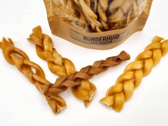 Deze gevlochten runderkophuid snack is een taaie hondensnack en is op lage temperaturen gedroogd. Doordat honden hier wat langer op kauwen zorgt het ervoor dat het gebit gereinigd wordt.