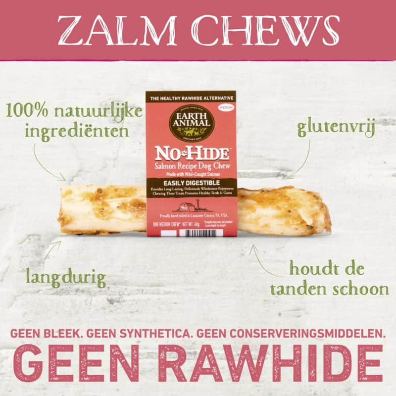 Deze kauwsnack van Earth Animal is gemaakt van 100% natuurlijke ingrediënten en is het alternatief voor de Rawhides. Er is dus geen gebruik gemaakt van bleekmiddel, kunstmatige toevoegingen of conserveermiddelen.