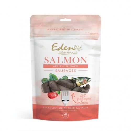 Eden Sausages hebben een zachte textuur gecombineerd met zoete aardappel, appel en spinazie. Met een vleesgehalte van 60% en smaakvolle toevoegingen zijn ze een onweerstaanbare snack voor je hond. Deze worstjes zijn lucht gedroogd om al hun natuurlijke voedingsstoffen en smaak te behouden. Dit levert een zacht en sappig worstje op wat gemakkelijk in kleinere stukjes kan worden gebroken en dus een ideale beloning tijdens de hondentraining.