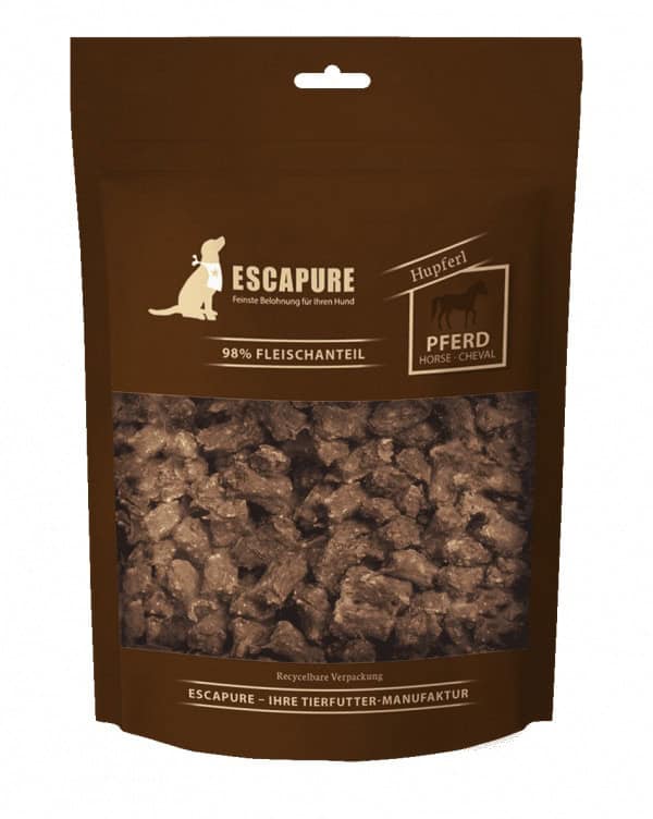 Deze Escapure Hupferl snoepjes zijn verfijnd met beukenhoutrook en een ideale traktatie tijdens de hondentraining of als beloning voor tussendoor. Door de enkelvoudige eiwitbron ook bijzonder geschikt voor honden met intoleranties of allergieën. De Escapure trainers zijn vrij van kunstmatige toevoegingen als geur-, kleur-, smaakstoffen en conserveermiddelen.
