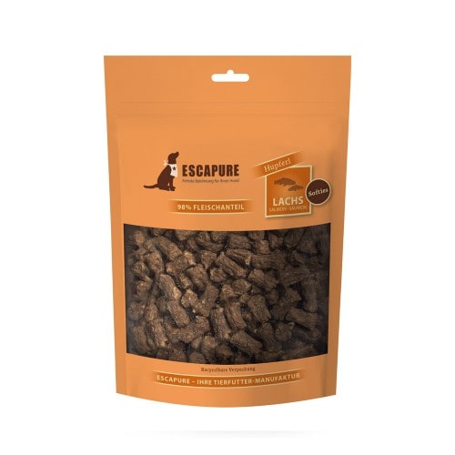 De bekende Hupferl maar dan in een malse (semi-moist) versie, eveneens met 98% echt vlees! Net zoals de gewone Hupferl op lage temperatuur en natuurlijk luchtgedroogd en vervolgens verfijnd in beukenhoutrook. De softies zijn ideaal als beloning tijdens de training of wandeling en doordat het zachte trainers zijn ideaal voor puppy’s en oudere honden. De Escapure trainers zijn vrij van kunstmatige toevoegingen als geur-, kleur-, smaakstoffen en conserveermiddelen.