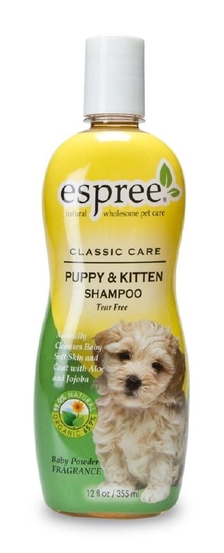 Soms is het nodig om je pup eens te wassen, bijvoorbeeld als hij/zij lekker heeft gerold in iets smerigs. Dat kan heel goed met deze Espree puppy shampoo en is een milde, hypo-allergene hondenshampoo die gegarandeerd veilig is voor gevoelige dieren zoals pups en kittens maar ook voor zogende of dragende teven. of dieren met een gevoelige huid. Wassen zonder tranen en zonder dat het nodig is het dier te drogen. Met het aroma van baby-talkpoeder!