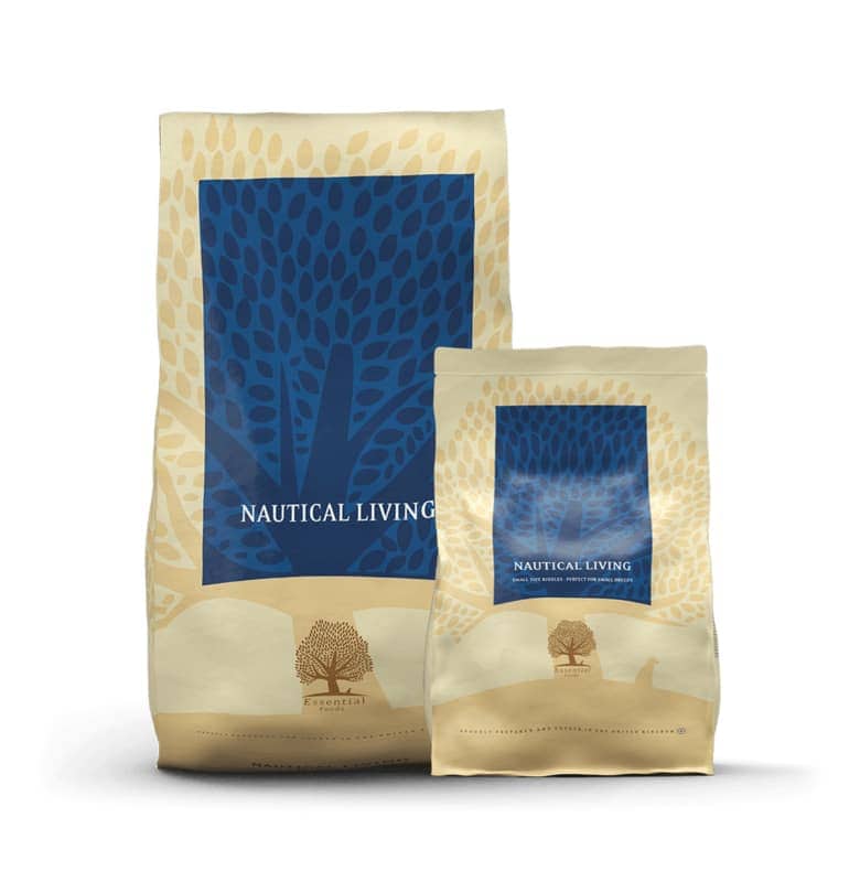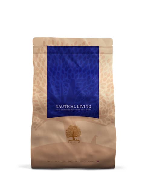 Essential Foods Nautical Living is een unieke graanvrije maaltijd compleet met verse zalm, forel, haring en seizoensvis. De nautical Living is bedoeld voor volwassen honden van alle rassen en bereid met 77% verse en gedroogde Schotse wilde en verantwoord gekweekte zalm, verantwoord gekweekte Salisbury regenboogforel, haring, seizoenvis, en hele verse ei. Hiervan is 55% verse vis en verse eieren (als % van het totale recept). Aangevuld met 23 % Groenten, zaden, kruiden, bessen, fruit, vitaminen en mineralen.
