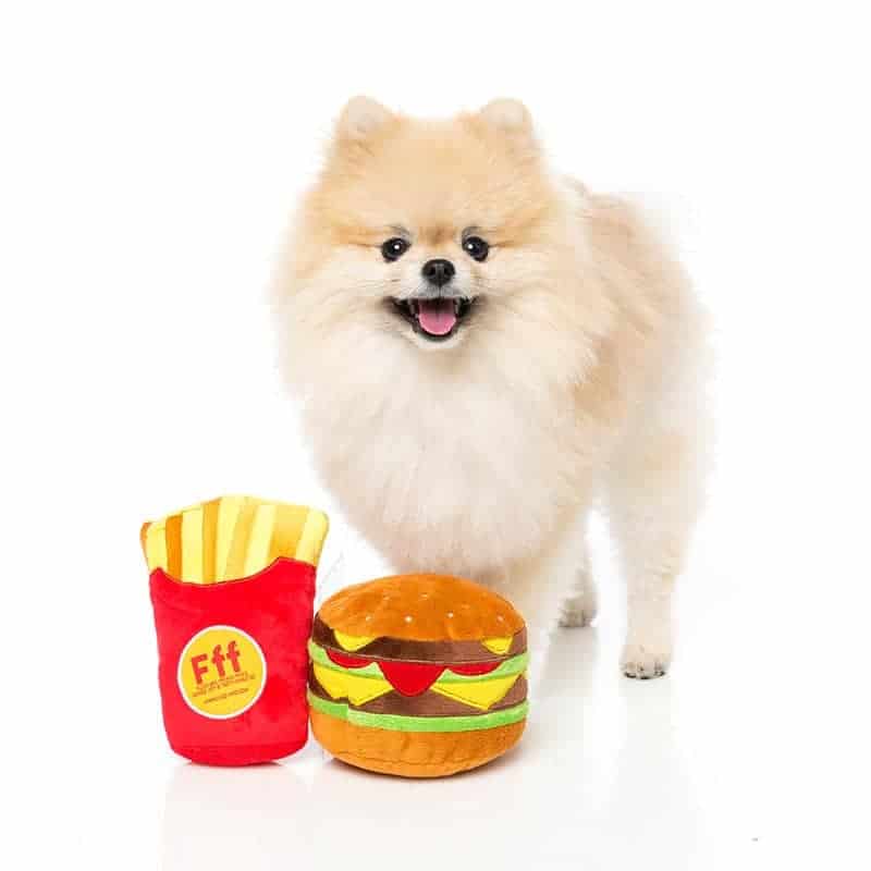 Hoe leuk is deze hamburger van Fuzzyard! Samen met de Fuzzyard frites heeft jouw hond ook een heerlijk hamburger menu. Sla, tomaat, kaas en een hamburger, allemaal op een heerlijk zacht broodje.