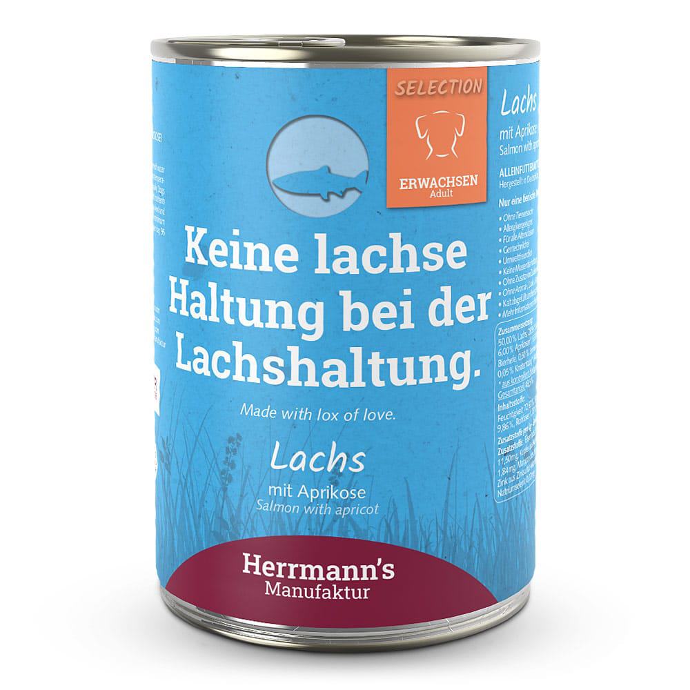 De sensitive blikvoedingen van Herrmann’s zijn volledige voedingen voor honden en voorzien van 1 dierlijke eiwitbron (monoproteïne). Hierdoor bijzonder geschikt voor honden met gevoelige maag/darmen of bepaalde intoleranties/allergieën. De voedingen bestaan uit 50 % vlees/vis aangevuld met groenten en fruit. Zalm bevat belangrijke omega 3 vetzuren en de chia zaden leveren waardevolle vitale voedingstoffen. De Herrmann’s blikvoedingen zijn vrij van kunstmatige toevoegingen als smaakstoffen, kleurstoffen en conserveringsmiddelen.