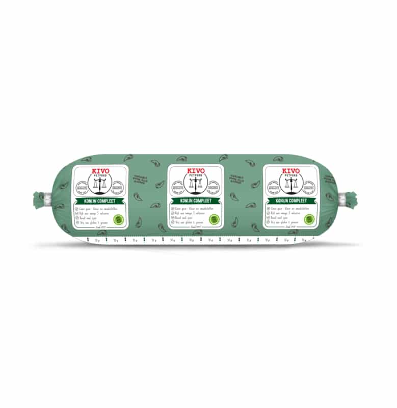 Deze maaltijd bevat alle essentiële voedingsstoffen, bouwstoffen, vitaminen en mineralen die je hond nodig heeft en is geschikt om dagelijks aan je hond te geven. De vitaminen en mineralen die in onze maaltijden zitten worden gewonnen uit natuurlijke bronnen. De natuurlijke bron in deze maaltijd is een haasachtige, namelijk het konijn. Deze bevat hoogwaardige ingrediënten zoals organen als hart, lever, long en nier. Het grootste deel bestaat uit spiervlees en bevat het karkas en bot als natuurlijke calciumbron. Er worden geen kunstmatige stoffen of chemische vitaminen toegevoegd. Wel is het verstandig om meerdere diersoorten per week te voeren van Kivo of een ander merk omdat je hond zo aan een groter scala van verschillende bouwstoffen en aminozuren komt.