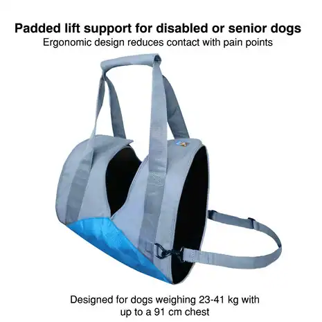 De Up & About Lifter geeft je hond volledige bewegingsvrijheid terwijl de romp wordt ondersteund. Het gewatteerde ontwerp en de verstelbare riempjes zorgen voor comfort, terwijl je door middel van het handvat ondersteuning kan bieden wanneer dat nodig is zonder bewegingsvrijheid van je hond te belemmeren.