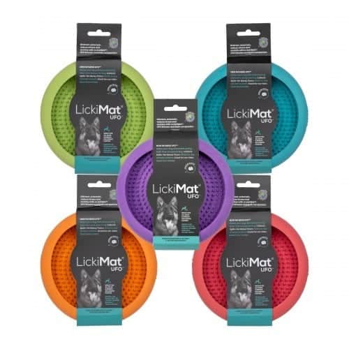 De LickiMat Ufo is ideaal om de verveling te doorbreken. Perfect voor rauw voer, natvoer, traktaties, yoghurt, spreads, vloeibaar voedsel, etc. Deze Ufo is met een rand zodat verspilling wordt tegengegaan. De Ufo heeft zuignappen zodat deze ook bij het trimmen en baden van je hond kan gebruikt worden. Ook ideaal voor in de auto.