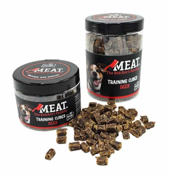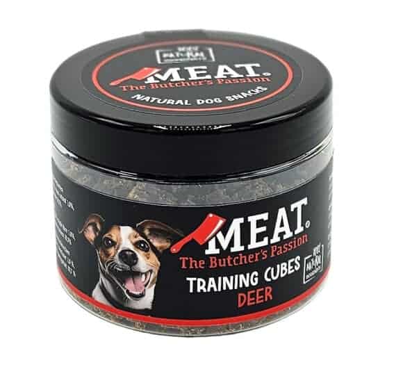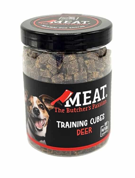 De MEAT Training Cubes vormen een ideale, gezonde beloning voor je hond. Met zijn hoge vleesgehalte is deze graanvrije, natuurlijke hondensnack een gezonde manier om je hond mee te belonen en te motiveren. De Cubes zijn vrij van granen, conserveermiddelen of andere kunstmatige toevoegingen. Het kleine-maar-fijne formaat van deze snack zorgt ervoor dat uw hond niet te lang op de snack moet kauwen en dus met zijn aandacht bij je blijft. De heerlijke vleesgeur en -smaak versterken het beloningseffect wat het aanleren van nieuwe dingen kan vergemakkelijken. Kortom de ideale beloningssnack.