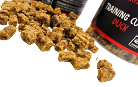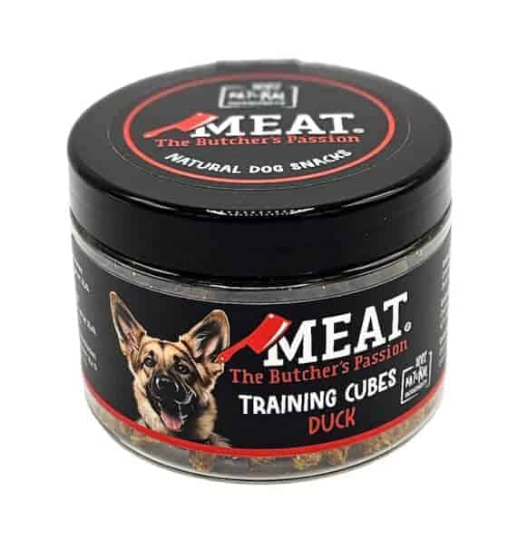 De MEAT Training Cubes vormen een ideale, gezonde beloning voor je hond. Met zijn hoge vleesgehalte is deze graanvrije, natuurlijke hondensnack een gezonde manier om je hond mee te belonen en te motiveren. De Cubes zijn vrij van granen, conserveermiddelen of andere kunstmatige toevoegingen. Het kleine-maar-fijne formaat van deze snack zorgt ervoor dat uw hond niet te lang op de snack moet kauwen en dus met zijn aandacht bij je blijft. De heerlijke vleesgeur en -smaak versterken het beloningseffect wat het aanleren van nieuwe dingen kan vergemakkelijken. Kortom de ideale beloningssnack.