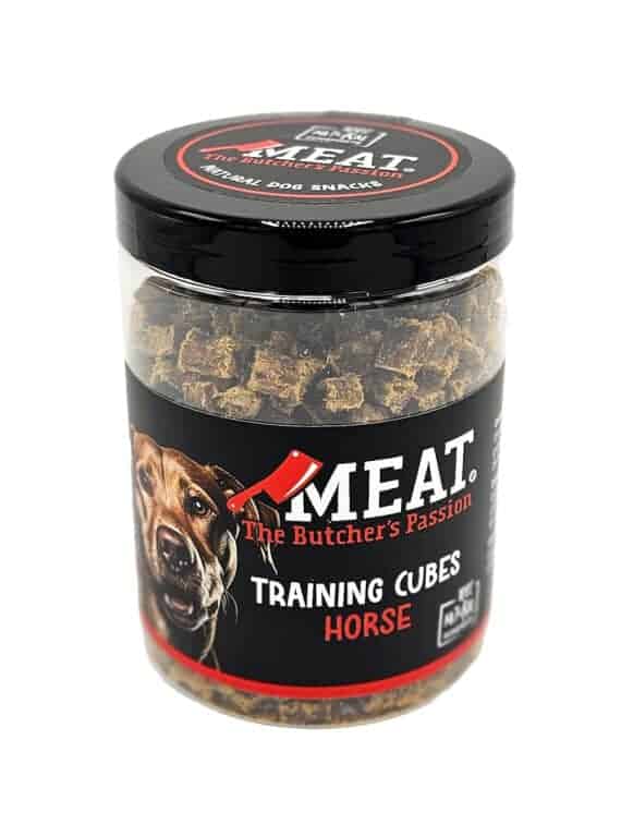 De MEAT Training Cubes vormen een ideale, gezonde beloning voor je hond. Met zijn hoge vleesgehalte is deze graanvrije, natuurlijke hondensnack een gezonde manier om je hond mee te belonen en te motiveren. De Cubes zijn vrij van granen, conserveermiddelen of andere kunstmatige toevoegingen. Het kleine-maar-fijne formaat van deze snack zorgt ervoor dat uw hond niet te lang op de snack moet kauwen en dus met zijn aandacht bij je blijft. De heerlijke vleesgeur en -smaak versterken het beloningseffect wat het aanleren van nieuwe dingen kan vergemakkelijken. Kortom de ideale beloningssnack.