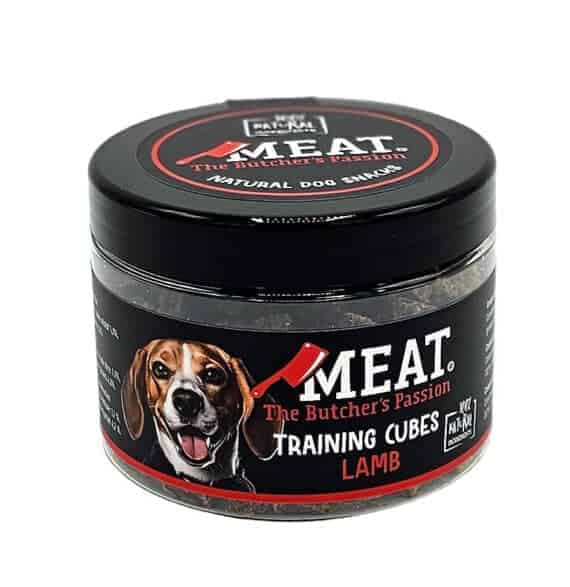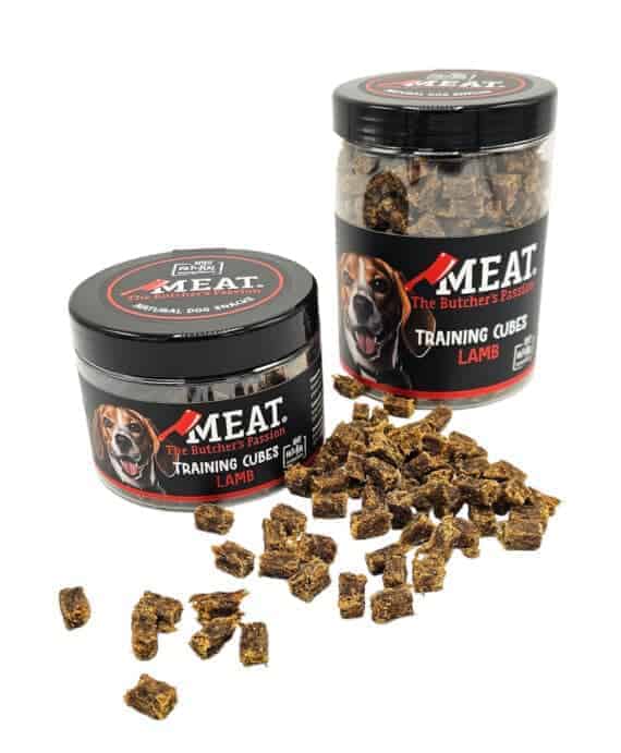 De MEAT Training Cubes vormen een ideale, gezonde beloning voor je hond. Met zijn hoge vleesgehalte is deze graanvrije, natuurlijke hondensnack een gezonde manier om je hond mee te belonen en te motiveren. De Cubes zijn vrij van granen, conserveermiddelen of andere kunstmatige toevoegingen. Het kleine-maar-fijne formaat van deze snack zorgt ervoor dat uw hond niet te lang op de snack moet kauwen en dus met zijn aandacht bij je blijft. De heerlijke vleesgeur en -smaak versterken het beloningseffect wat het aanleren van nieuwe dingen kan vergemakkelijken. Kortom de ideale beloningssnack.