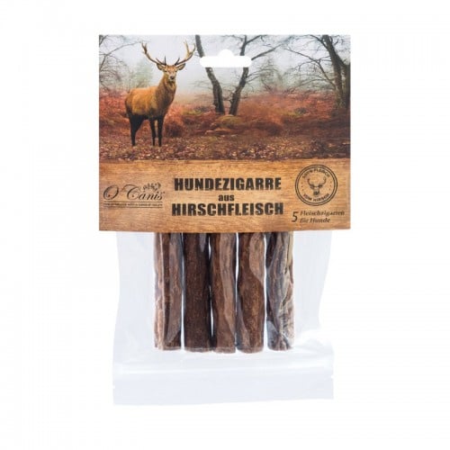 Heerlijk krokante sigaren met 100% hertenvlees. Een heerlijke beloning voor tussendoor en zijn geschikt voor kleine en grote honden. Deze sigaren zijn ongeveer 14 cm groot en zijn per 7 verpakt. Verder zijn de sigaren vrij van granen, suikers en kunstmatige toevoegingen als geur-, kleur-, smaakstoffen en conserveermiddelen.