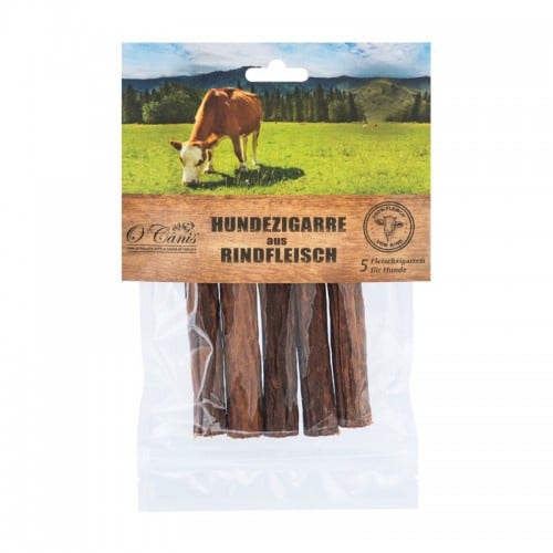 Heerlijk krokante sigaren met 100% rundvlees. Een heerlijke beloning voor tussendoor en zijn geschikt voor kleine en grote honden. Deze sigaren zijn ongeveer 14 cm groot en zijn per 7 verpakt. Verder zijn de sigaren vrij van granen, suikers en kunstmatige toevoegingen als geur-, kleur-, smaakstoffen en conserveermiddelen.