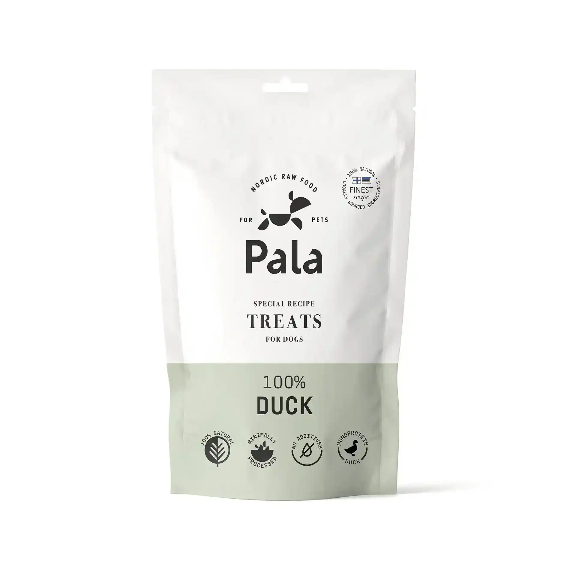 Naast de luchtgedroogde voedingen voor honden heeft Pala ook luchtgedroogde snacks in 7 verschillende varianten. Deze variant is voorzien van 100% eend. Een hypoallergene beloning, geschikt voor veel honden met allergieën, en boordevol magere eiwitten. Rijk aan ijzer, zink, selenium, B-vitamines, aminozuren zoals lysine en leucine, magere eiwitten en gezonde vetzuren. Eendenvlees is geweldig voor het opbouwen van gezonde botten en spieren, en het verbetert de stofwisseling en de productie van rode bloedcellen.