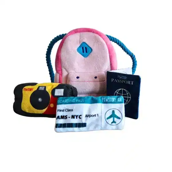 Avontuur wacht met onze Billy Backpack! Dit pluche speeltje, in de vorm van een rugtas met een vliegticket, paspoort en camera, laat je harige reisgenoot de wereld verkennen zonder het huis te verlaten. Geef je pup een ‘paws’-port voor speelse ontdekkingsreizen en leg samen onvergetelijke speelavonturen vast.