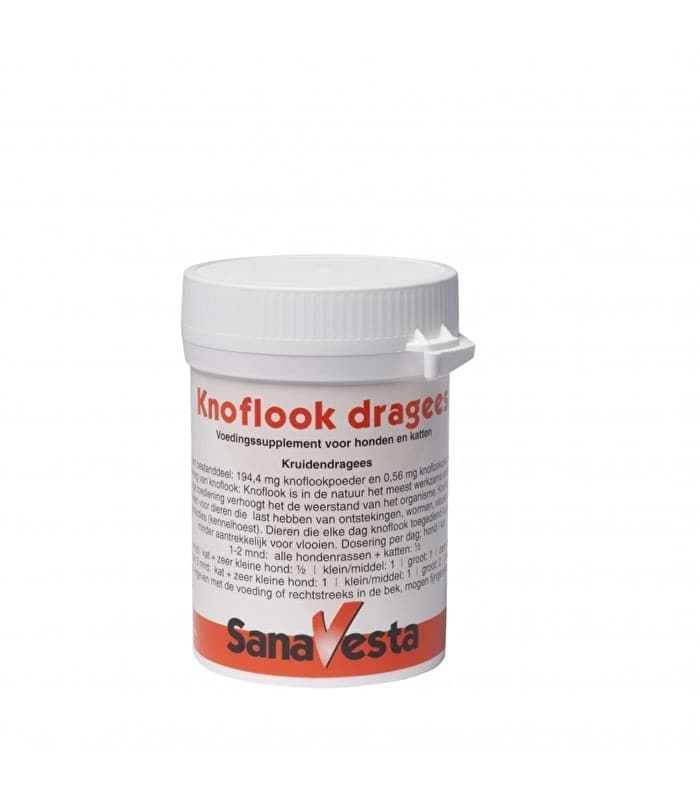 Sana-Vesta knoflookdragees verhogen de weerstand en de werking van de lever van uw hond. Daarnaast maken Sana-Vesta knoflookdragees uw hond minder aantrekkelijk voor vlooien, wormen en teken.