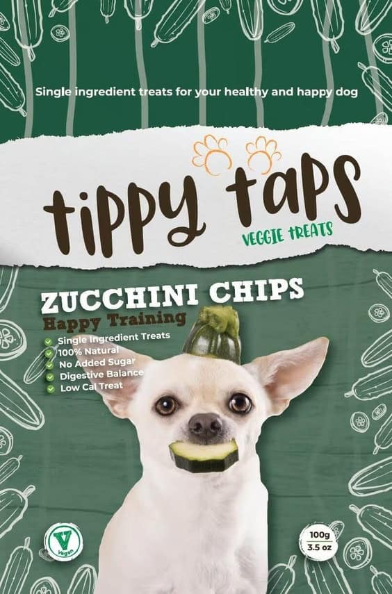 Deze Tippy Taps courgette snacks zijn een verantwoorde gezonde snack voor je hond. Gemaakt van 100% gedroogde courgette zonder kunstmatige toevoegingen. Courgettes bevatten net als andere groentesoorten veel vezels en voedingsstoffen en erg weinig calorieën. Vezels dragen bij aan een gezonde spijsvertering en kunnen zorgen voor een betere stoelgang bij je hond.