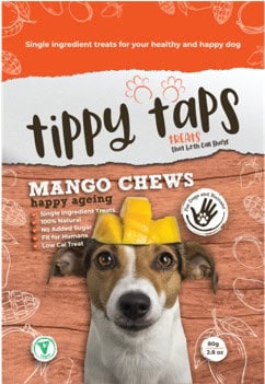 Tippy Taps Mango snacks zijn de ultieme gezonde traktatie voor je hond. Mango’s zitten boordevol alfa- en bètacaroteen, maar ook vitamine E, allemaal krachtige antioxidanten waar je hond zeker van zal genieten. Bovendien is mango een bron van vitamine A, vitamine C om een ​​goed collageengehalte te behouden en vitamine B6 een natuurlijke ontstekingsremmer. Een gezond alternatief naast de vele vleessnacks.