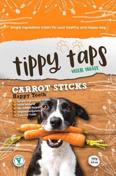 Deze Tippy Taps wortel snacks zijn een verantwoorde gezonde snack voor je hond. Gemaakt van 100% gedroogd wortel zonder kunstmatige toevoegingen. Wortelen bevatten net als andere groentesoorten veel vezels en voedingsstoffen en erg weinig calorieën. Vezels dragen bij aan een gezonde spijsvertering en kunnen zorgen voor een betere stoelgang bij je hond.