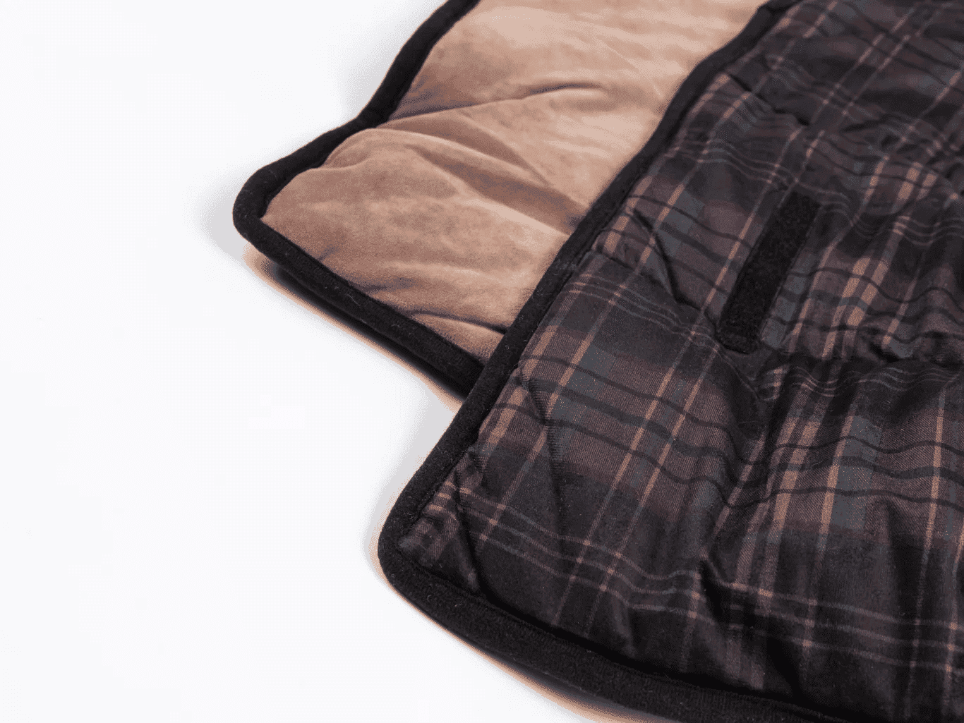 De deken heeft een geïntegreerd draaghengsel met klittenband en kan eenvoudig worden opgevouwen en vastgezet met het klittenband. Dit garandeert comfortabel vervoer naar het restaurant of op reis. Het klittenband kan volledig worden verwijderd wanneer het niet in gebruik is.