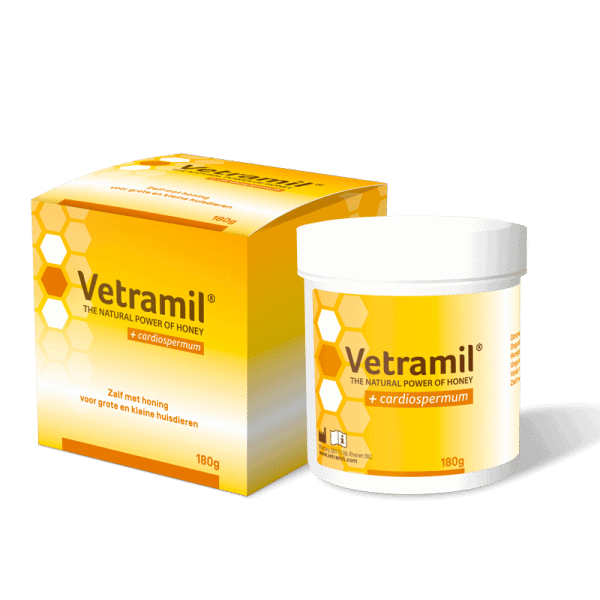 De zalf werkt verzachtend en ondersteunt het herstellend vermogen van de huid. Het laat zich makkelijk aanbrengen en kan zo nodig worden afgedekt met een pleister of een verbandgaasje. Door de vette samenstelling blijft de zalf ook in een natte omgeving goed op zijn plaats. Vetramil beschermt en zuivert de geprikkelde huid. Door de toevoeging van essentiële oliën heeft de zalf een bittere smaak, waar dieren niet van houden. Dit voorkomt dat dieren de zalf oplikken. Een extract van Cardiospermum zorgt voor een rustige huid, waardoor de zalf ook heel geschikt is voor de behandeling van de huid na insectenbeten. Geschikt voor mens en dier.