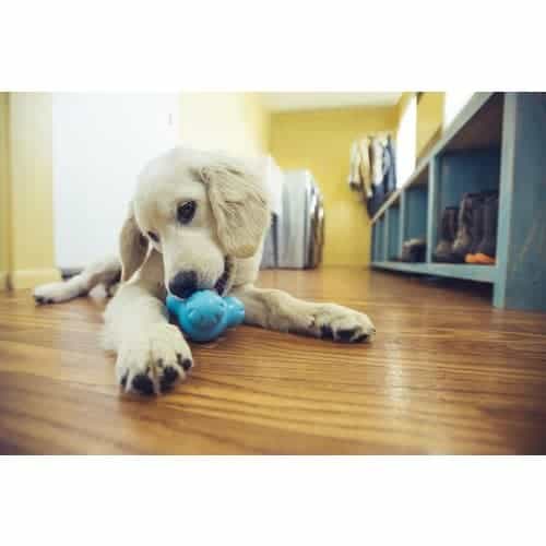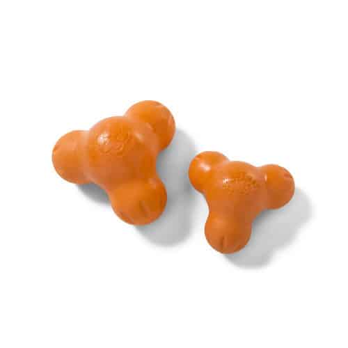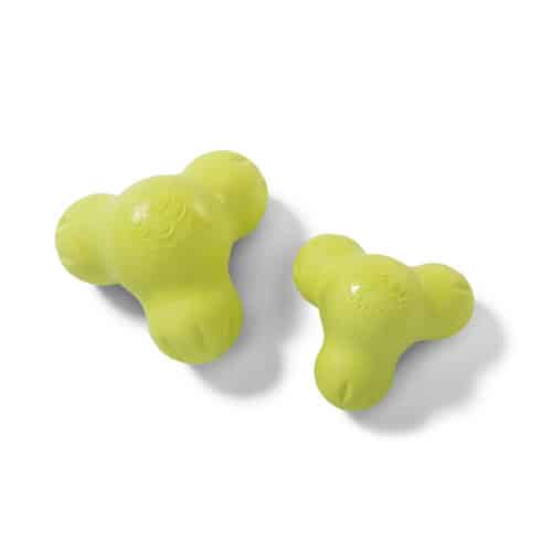 De West Paw Zogoflex Tux is verkrijgbaar in 3 vrolijke kleuren (appel groen, aqua blauw en oranje). Elk kleurrijk Zogoflex speelgoed bevat 20% gerecycled materiaal. Zogoflex geeft vrijwel geen afval tijdens het productie proces.