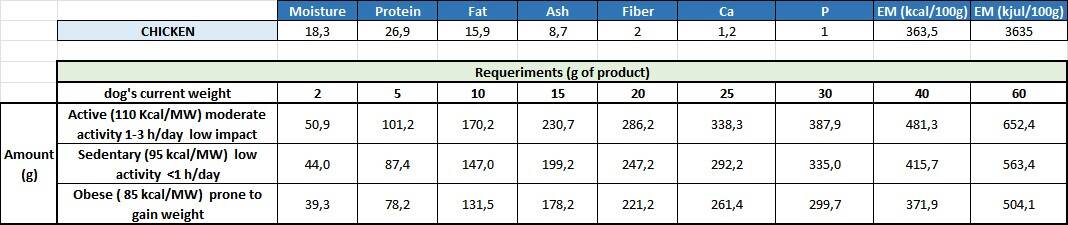 Analytische bestanddelen: ruw eiwit 26,9%, ruw vet 15,9%, ruwe as 8,7%, ruwe celstof 2%,vocht 18,3%, Ca 1,2%, P 1,0%. Metaboliseerbare energie 3635 kcal/Kg